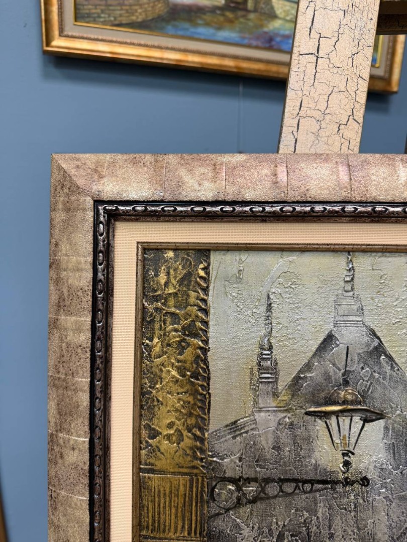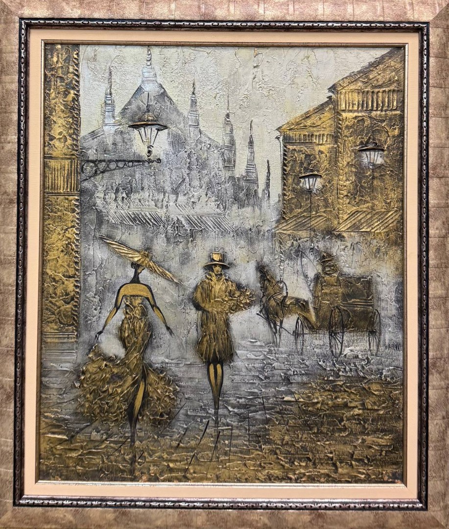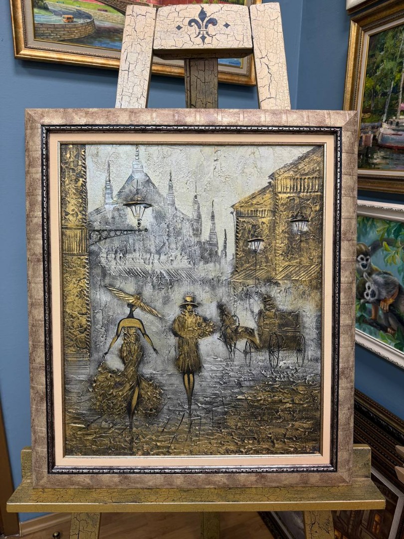 Картина написана маслом на холсте, городской пейзаж "Вечерний выход".