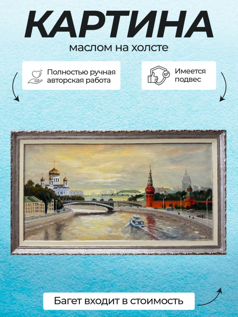 В нашем интернет-магазине картин, вы можете купить картину написанную маслом на холсте, под названием "Вид на Кремль и Храм Христа Спасителя"