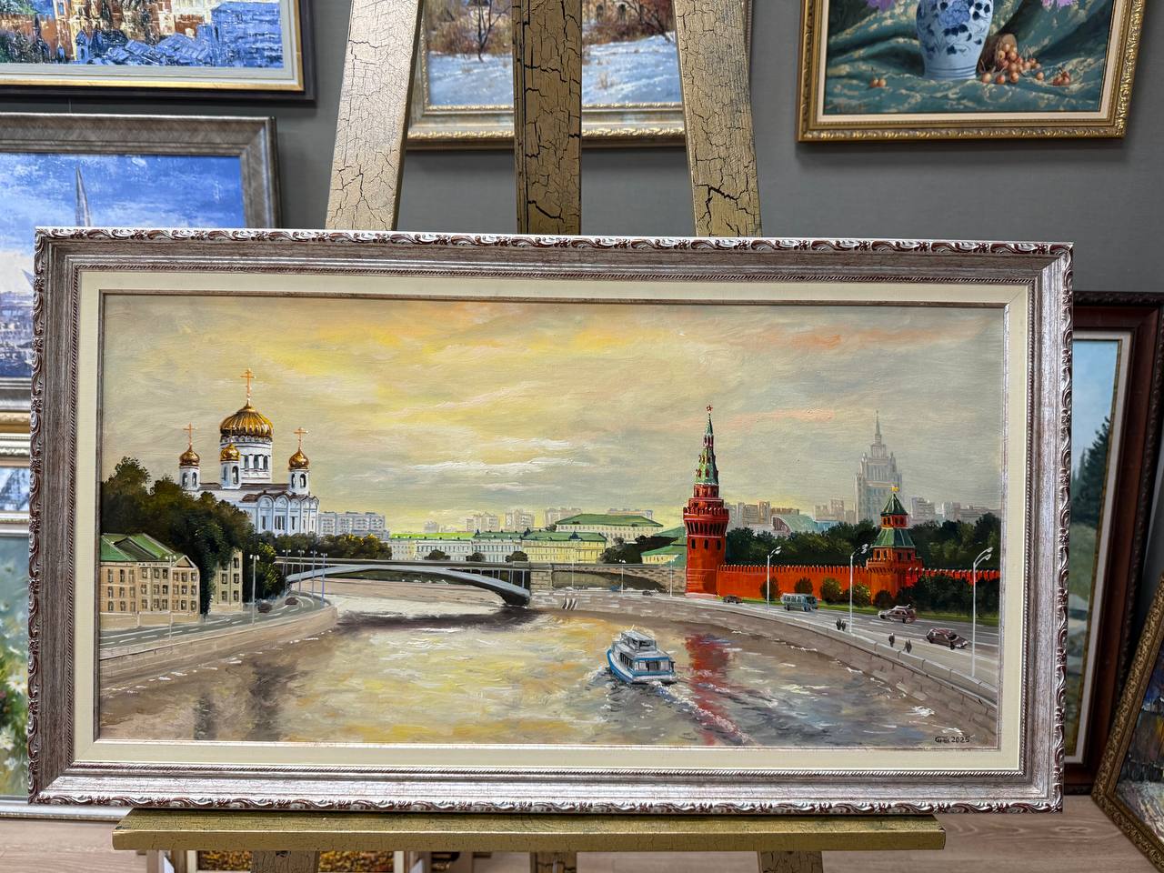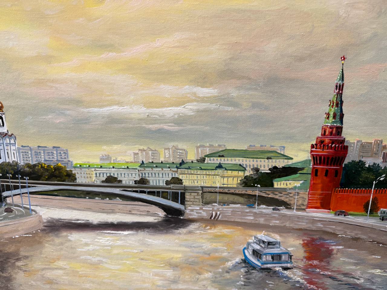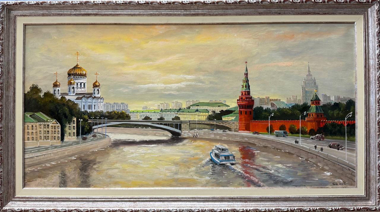 Картина написана маслом на холсте, городской пейзаж "Вид на Кремль и Храм Христа Спасителя".