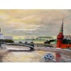 Картина светлая, воздушная, наполненная летним спокойствием и величием столицы. Это современный городской пейзаж, где история и современность гармонично соединяются в лучах солнечного света.