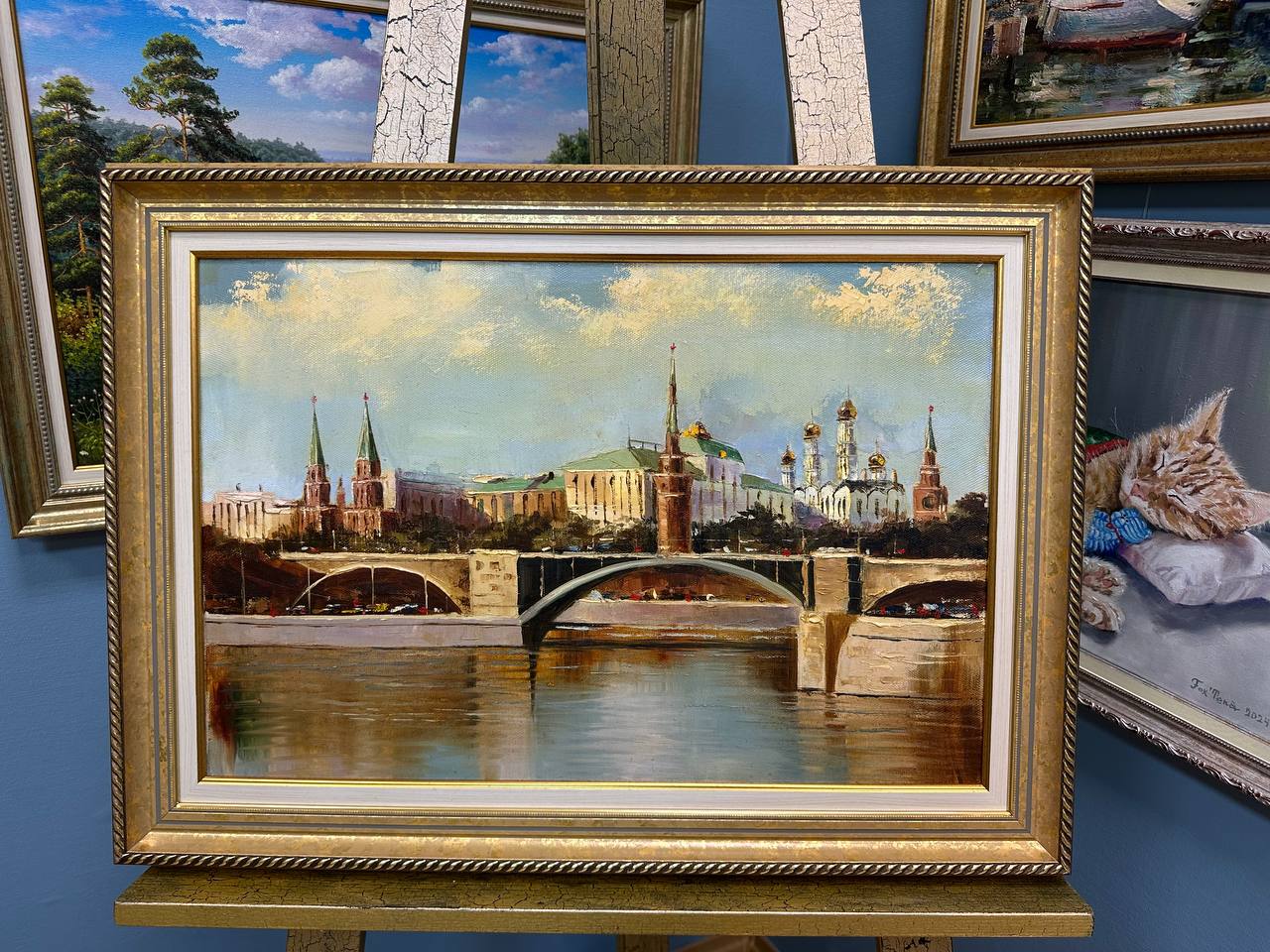 Картина написана маслом на холсте, городской пейзаж "Вид на Кремль".
