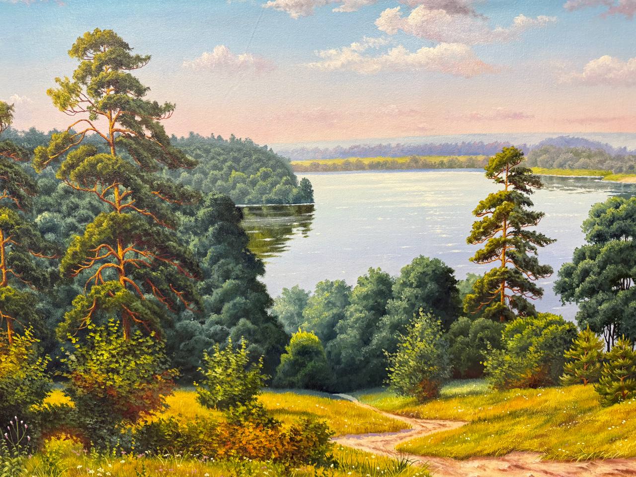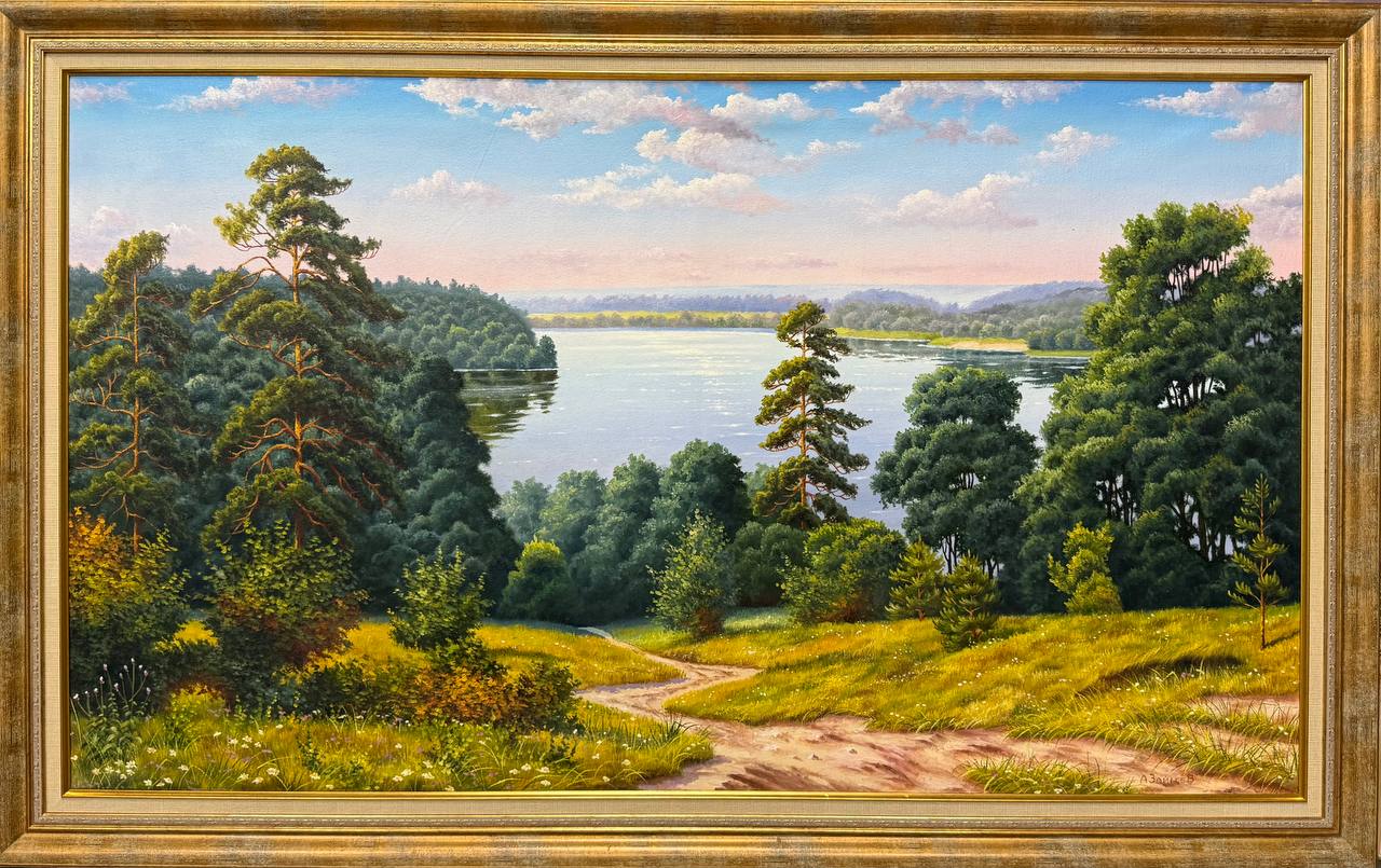 Картина написана маслом на холсте, летний пейзаж "Высокий берег".