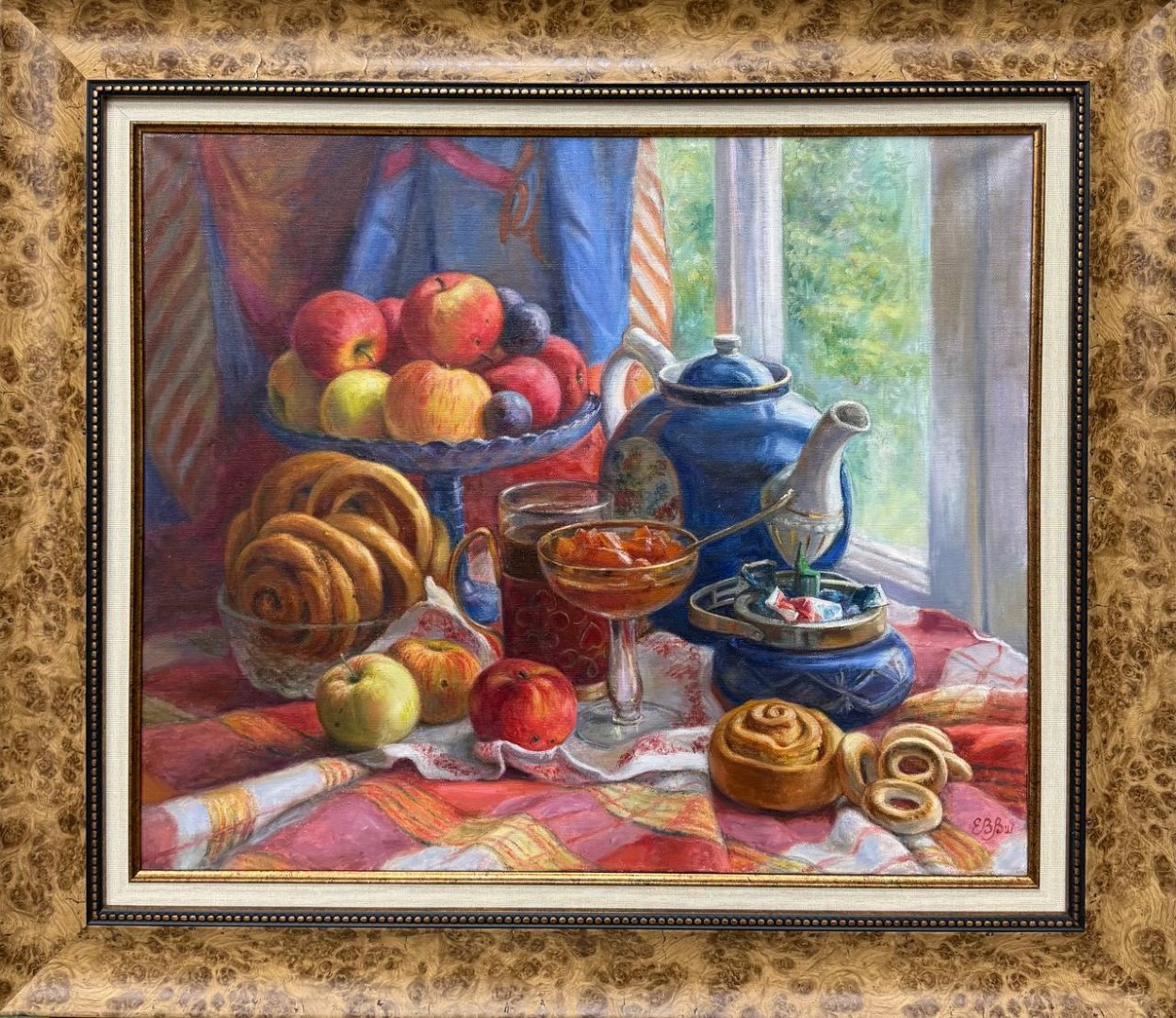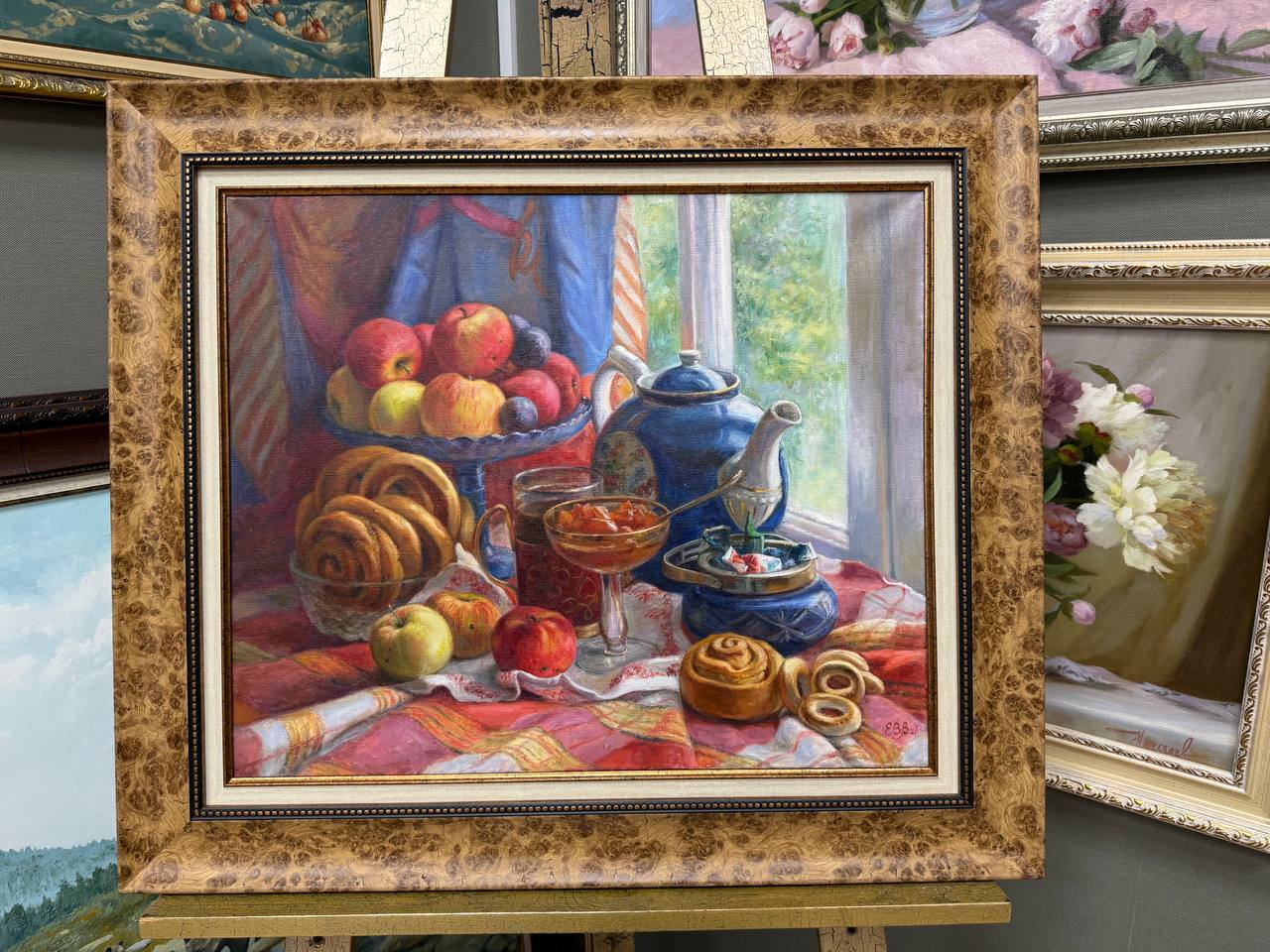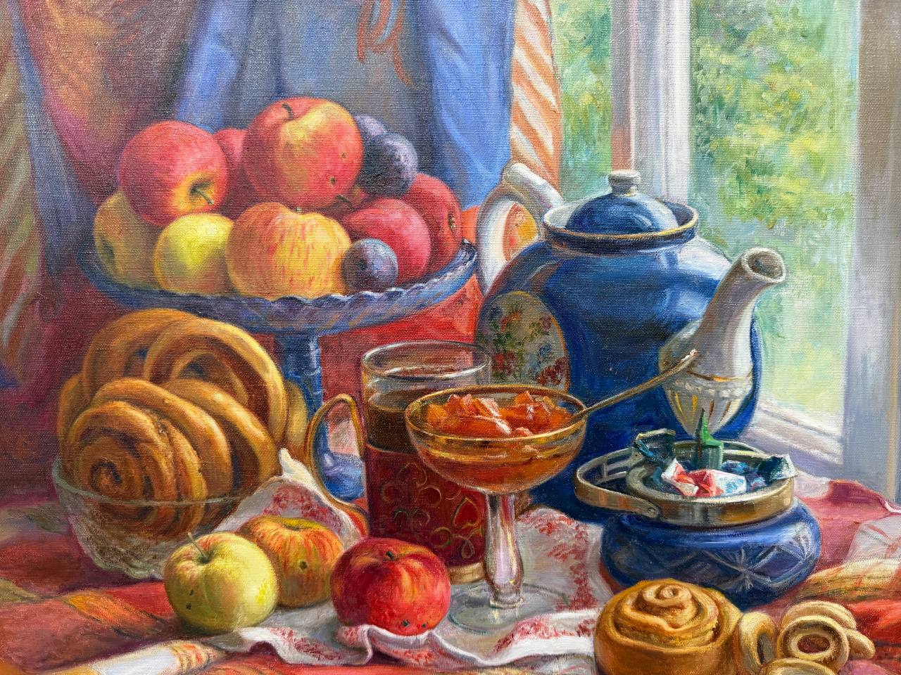 Картина написана маслом на холсте, натюрморт "Яблочное варенье".