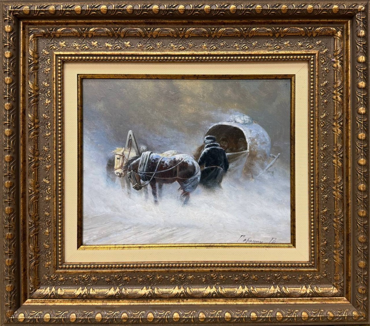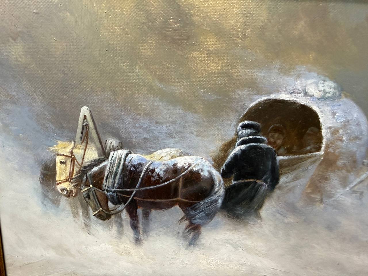 Картина написана маслом на холсте, зимний пейзаж "Ямщик".