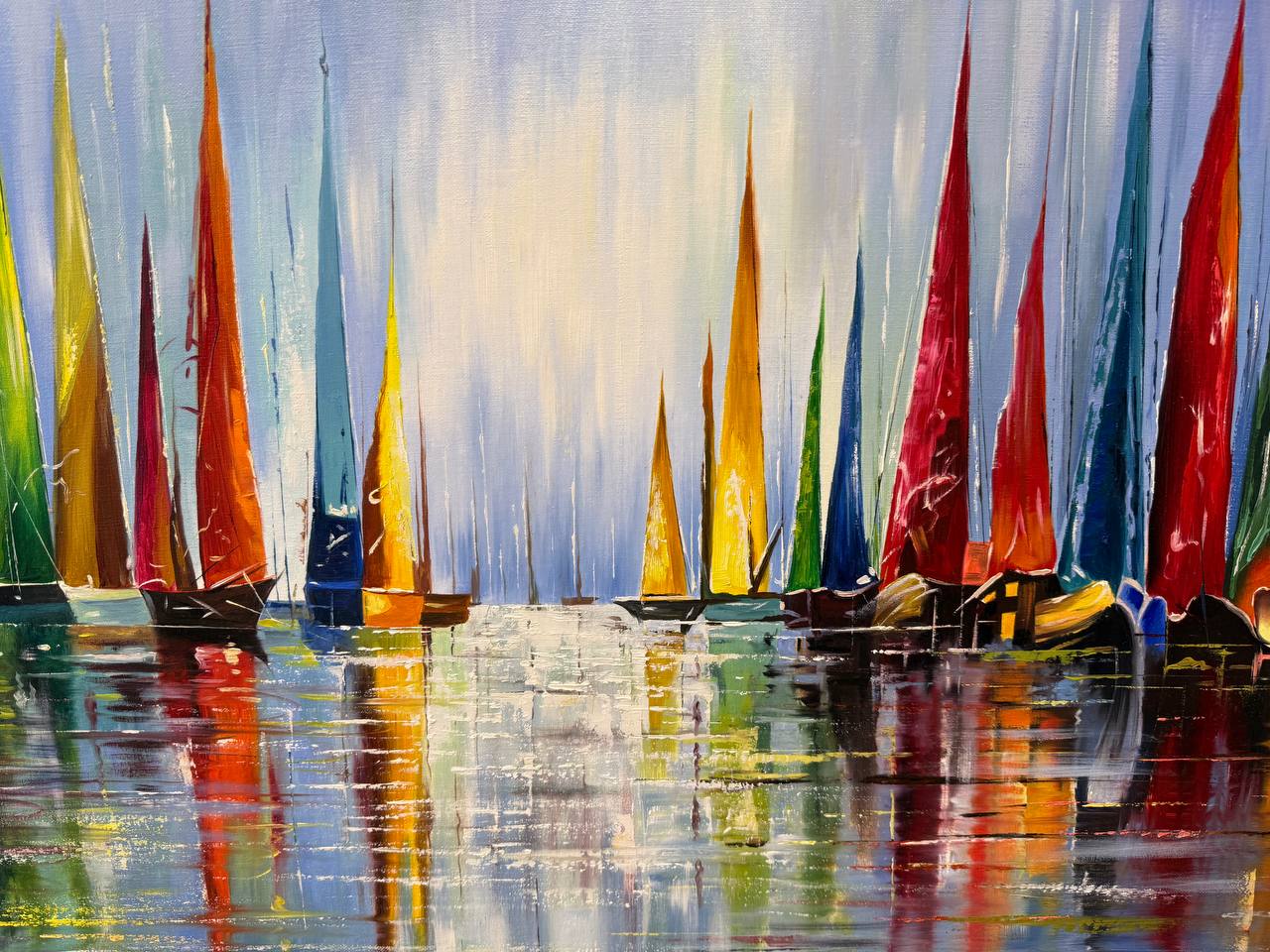 Картина написана маслом на холсте, абстракция "Яхты" 1.