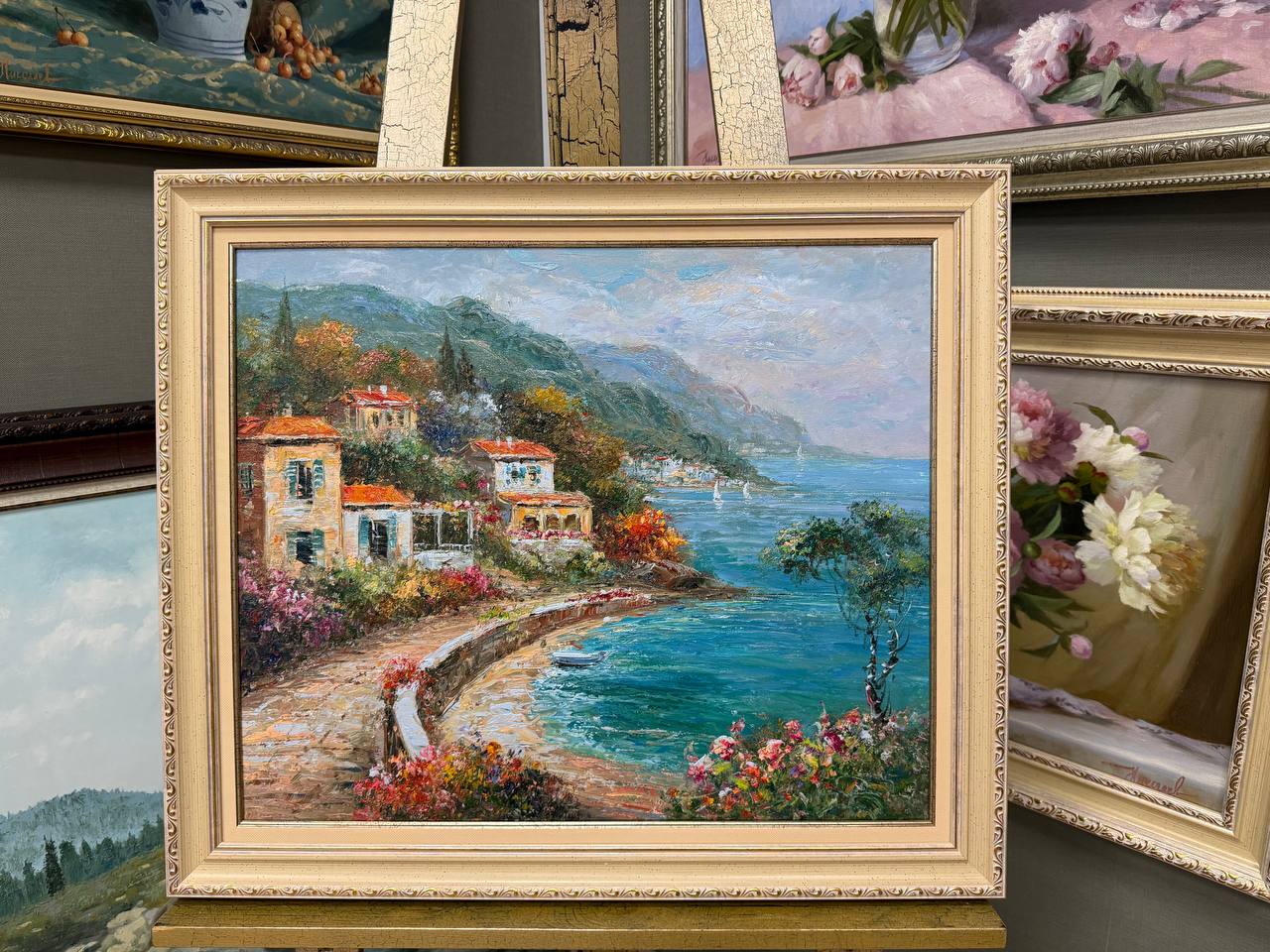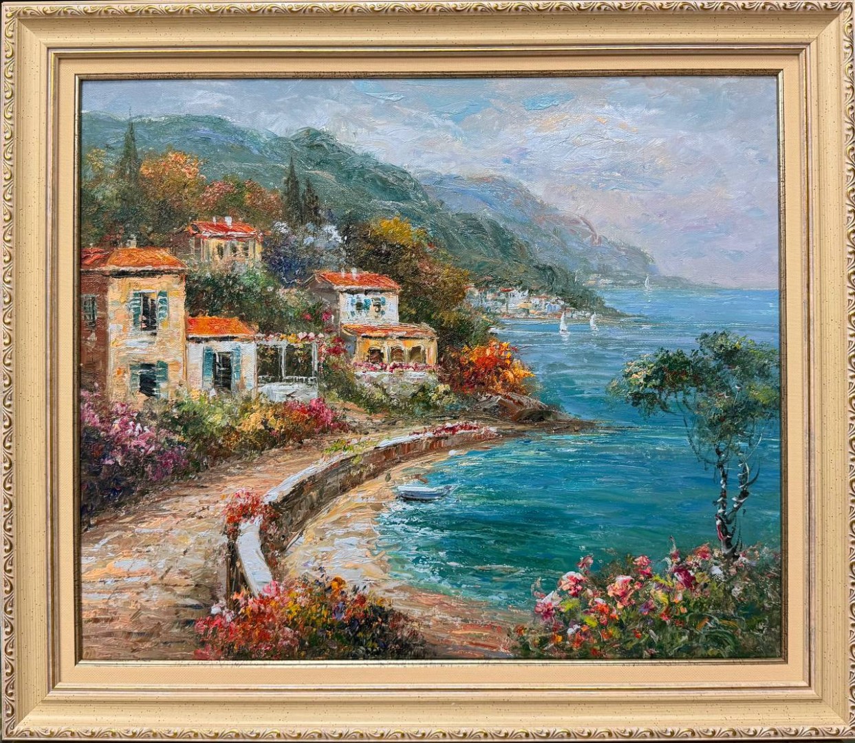 Картина написана маслом на холсте, морской пейзаж "Южный городок".