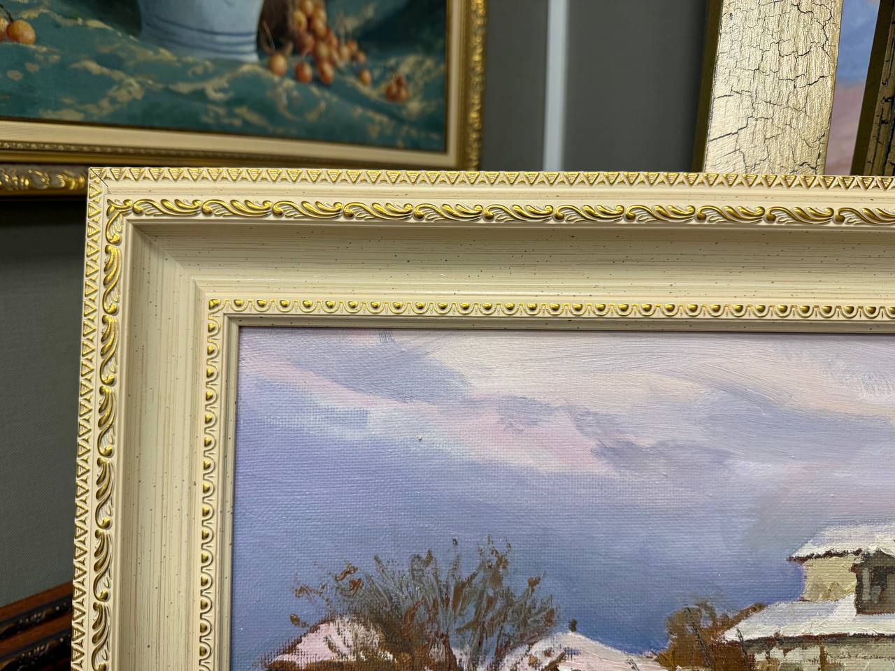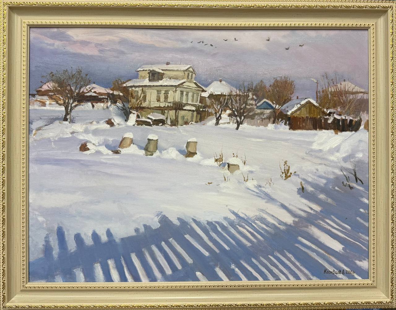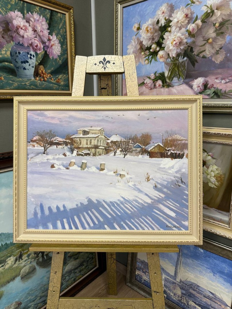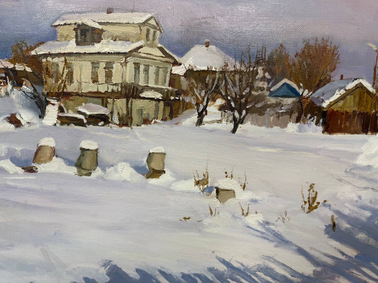 Картина написана маслом на холсте, зимний пейзаж "Зимний вечер".