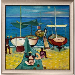 Марины современных живописцев - это красивые реалистичные виды средиземноморских побережий. Зритель не только видит пейзаж моря, но и чувствует, как поднимаются тяжёлые волны во время бури. В них столько неистовой силы, что они способны сокрушить всё на своём пути. Всё, кроме белоснежного парусника.