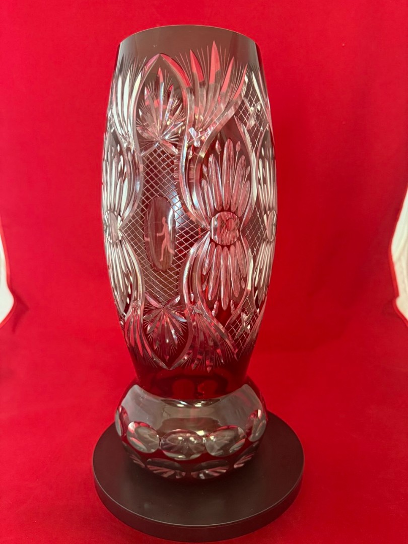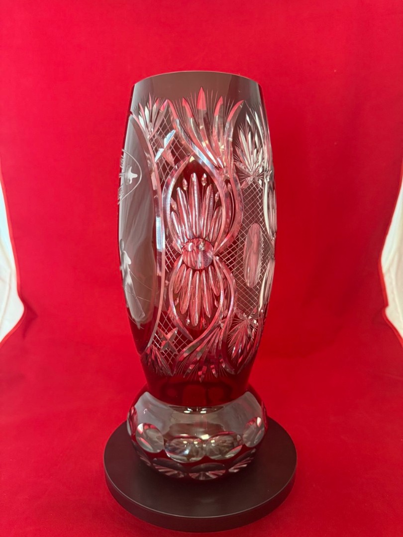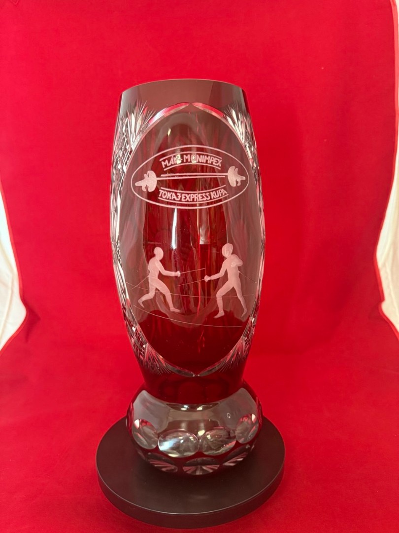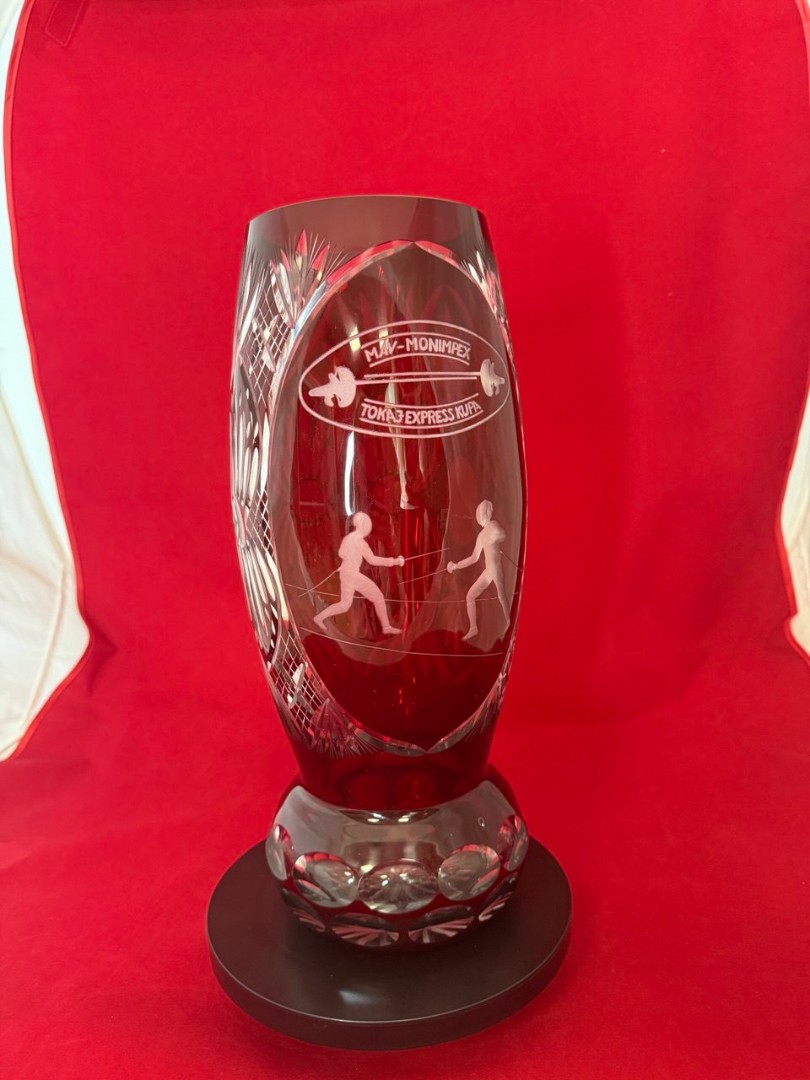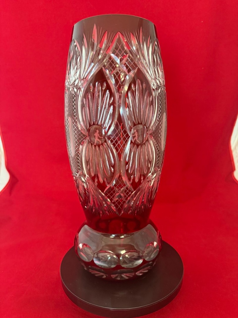 Ваза из рубинового стекла "Фехтовальщики". Egermann. Производство Чехия.